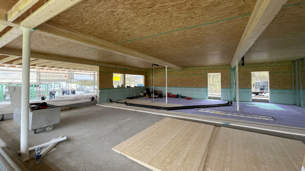Das neue Gebäude in moderner Holzsystembauweise umfasst rund 960 Quadratmeter und setzt mit einem begrünten Flachdach, Photovoltaik sowie Luftwasserwärmepumpen auf zeitgemäße Technik. Während die Rohbauarbeiten damit offiziell abgeschlossen sind, konzentriert sich das Geschehen nun auf den Innenausbau und den anstehenden Fenstereinbau, um die geplante Eröffnung im September zu realisieren.