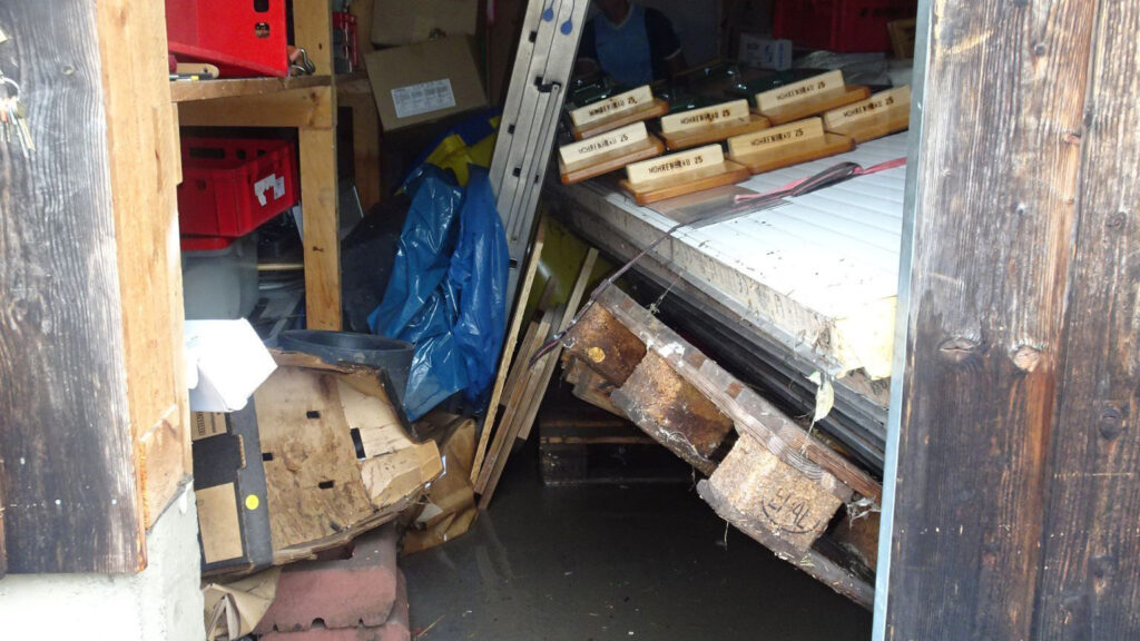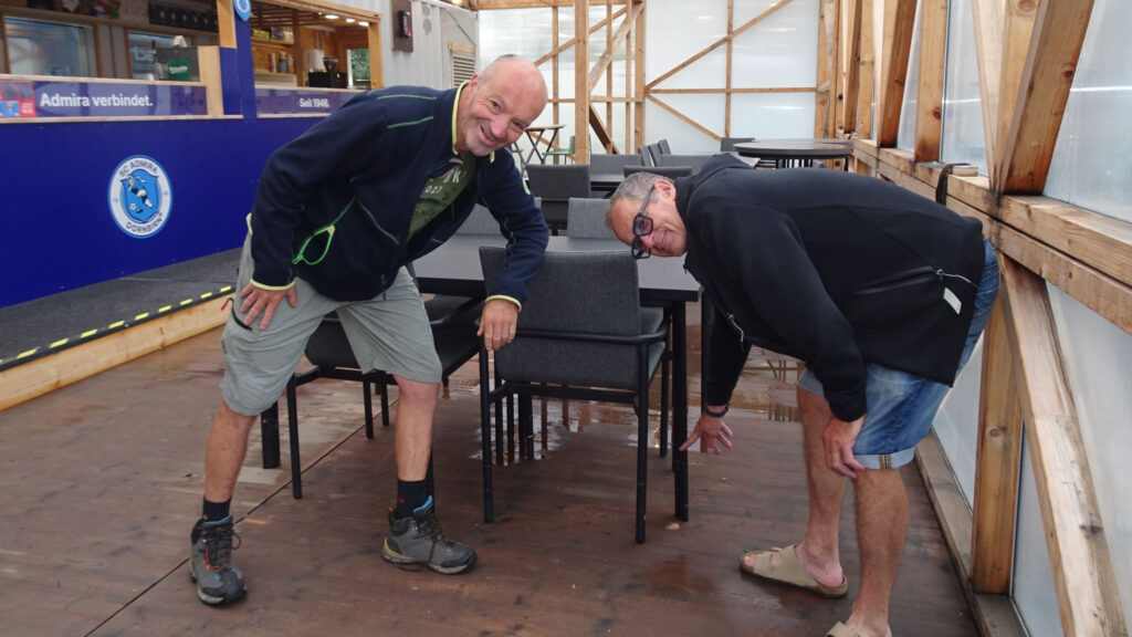 Nur wenige Monate nach dem verheerenden Brand traf die Admira der nächste harte Schlag: Ein schweres Unwetter setzte unser mühsam aufgebautes Container-Provisorium an der Forachstraße in der Nacht auf Freitag knapp einen Meter unter Wasser. Schwere Holztische wurden weggespült, der Geräteschuppen überflutet und das Wasser verfehlte den Stromkasten um Haaresbreite, nur wenige Zentimeter mehr hätten das Wasser unter Strom gesetzt und die knietief darin stehenden Personen in absolute Lebensgefahr gebracht. Doch anstatt zu resignieren, zeigte sich am nächsten Morgen sofort wieder das wahre Gesicht unseres Vereins: Zahlreiche unermüdliche Helfer:innen und Funktionär:innen standen ab den frühen Morgenstunden im Dauereinsatz, um Schlamm und Wasser zu beseitigen.