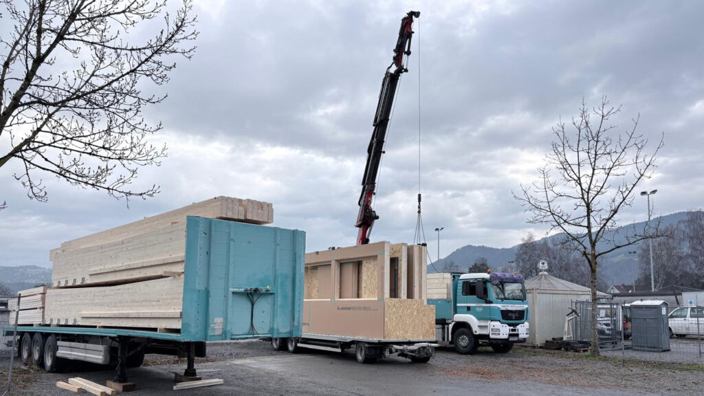 Es geht endlich los! Nach intensiven, monatelangen Planungen und unzähligen Besprechungen zwischen dem Vereinsvorstand, engagierten Mitgliedern und der Stadt Dornbirn wurde heute der sichtbare Grundstein für unsere neue Heimat gelegt: Die ersten Holzbaumodule für den Neubau der Sportanlage Rohrbach wurden geliefert. Dieser Moment markiert den lang ersehnten Übergang von der Theorie zur Praxis. In den kommenden Monaten wird unser neues Clubheim Stück für Stück Gestalt annehmen. Wenn alles nach Plan läuft, rechnen wir mit einer Fertigstellung und feierlichen Eröffnung zwischen September und Oktober dieses Jahres.
